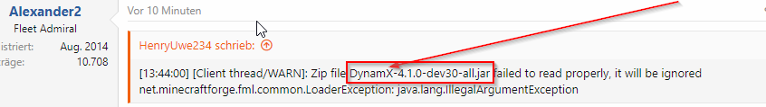 [13:44:00] [Client thread/WARN]: Zip file DynamX-4.1.0-dev30-all.jar failed to read properly, it will be ignored