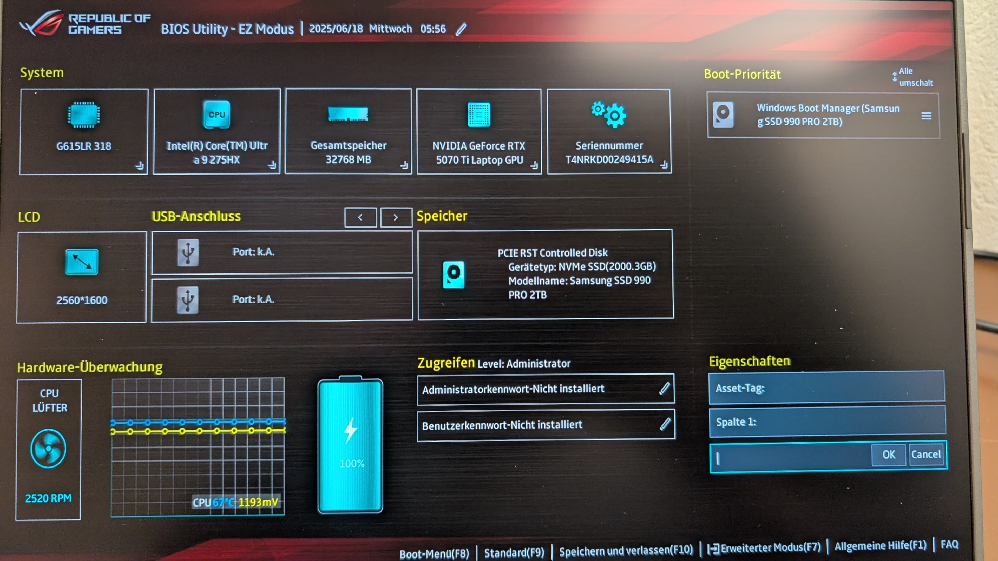 BIOS ist aktuell und sonst wusste ich nicht was ich machen könnte. In dem anderen PC geht die SSD ohne Probleme.