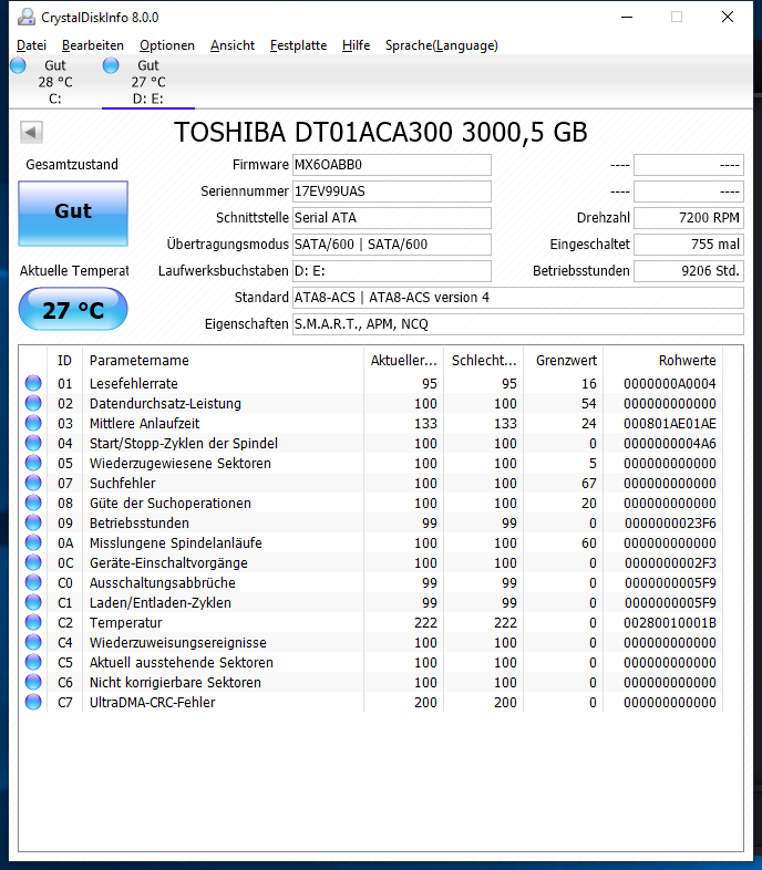 So nun weiß ich nicht mehr weiter, habe ich mir mit dem Adapter irgendwie die Platten geschrottet? Ich könnte den Rechner nochmal neu installieren, da er theoretisch selbst während der Installation ständig dem Adapter ausgeliefert war.
