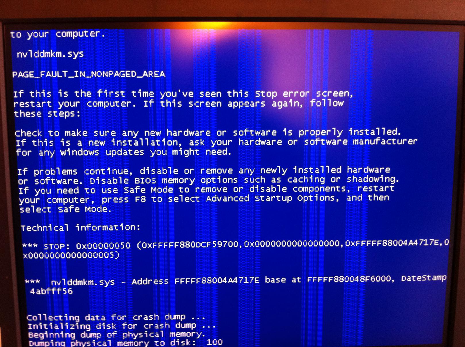 ... habe meinen PC eben wie immer normal gestartet und nach 10 Minuten friert das Bild auf beiden Bildschirmen ein und die Farben werden teils verfälscht bzw. es sind vertikale Linien über dem Bildschirm. Nach einem Reset kommt erst ganz normal der Windows7-Lade-Screen und dann wenn die Loginmaske kommen soll ein Bluescreen (siehe unten). Selbst das ASUS-Logo ganz am Anfang ist schon mir vertikalen Linien überzogen - sieht wohl nach Grafikkarten-Schaden aus, würde meine Laienmeinung vermuten.