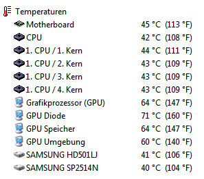 EDIT: Jetzt hab ich den PC kurz ausgemacht und neu gestartet und nun ohne Probleme - ich hab nochmal den Bluescreen-Report beigeheftet und die aktuellen Temperaturen - sind aber okay. Mach dennoch grad mal ne Runde Gehäuse-Reinigung und Aussaugen