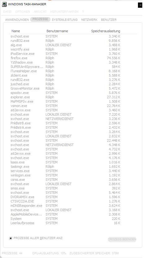 Kann mir jem. weiterhelfen? Anbei ist mal ein Hijackthis scan und Screenshot aller Prozesse im Taskmanager.