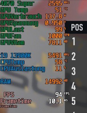 Als ich noch eine AMD Karte hatte, habe ich alles über Adrenalin gemacht + Hwinfo. Seit meiner RTX 5080 bin zurück zum Afterburner, da ich darüber auch die Übertaktung vornehmen. Das Overlay mache ich allerdings nur zur Kontrolle an, wenn ich ein Spiel zum ersten Mal starte, um die Performance zu begutachten und anschließend ggf. nachzujustieren. Im Anschluss äußert selten, um vielleicht mal in besonders belebten Gebieten CPU und RAM Auslastung zu prüfen, rein aus Interesse.