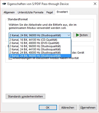 Diese Modi habe ich bei Audiogeräte verwalten (2 Kanal), wie ist das zu verstehen? - siehe Anhang