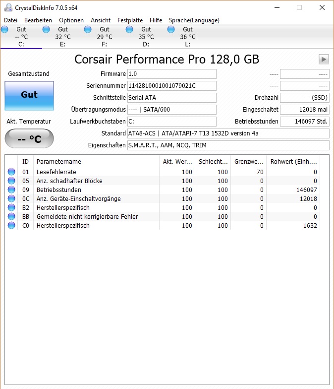 2: Ich habe zusätzliche HDDs angeschlossen. Ich hatte schon länger neben 1x Corsair Performance Pro 128 (System), 2xWD30EZRX und 1xWD40EZRX noch 1xSamsung HD322HJ, die besagte schadhafte Toshiba und 1xBD-RW im System, hatte aber nur vier Kabel angeschlossen und dann je nach Bedarf immer zwischen den letzten dreien umgesteckt. Beim RAM-Einbau wollte ich die Gelegenheit nutzen und habe alle Laufwerke verkabelt, das BD-RW an den MArvell 88SE9172-Controller auf dem Board, für den ich einen Treiber und das Tray-Tool von Asrock (weil neuer als der auf der Gigabyte-HP) installiert habe. Bei der Gelegenheit habe ich auch meine GTX670OC ausgebaut, weil ich momentan eh nicht zocke und wegen eines Bugs der Graka bei Videoaufnahmen aus einem bestimmten Zeitraum die IGP nutze. Dabei habe ich im BIOS der IGP 1GB RAM statt vorher 512MB zugewiesen (soviel kann ich im F3-BIOS garnicht zuweisen). Da das Problem aber auch auftritt, wenn die Samsung und die Toshiba nicht angeschlossen sind, kann es daran eigtl. nicht liegen. Ich schalte gleich nochmal den Marvell-Controller testweise ab.
