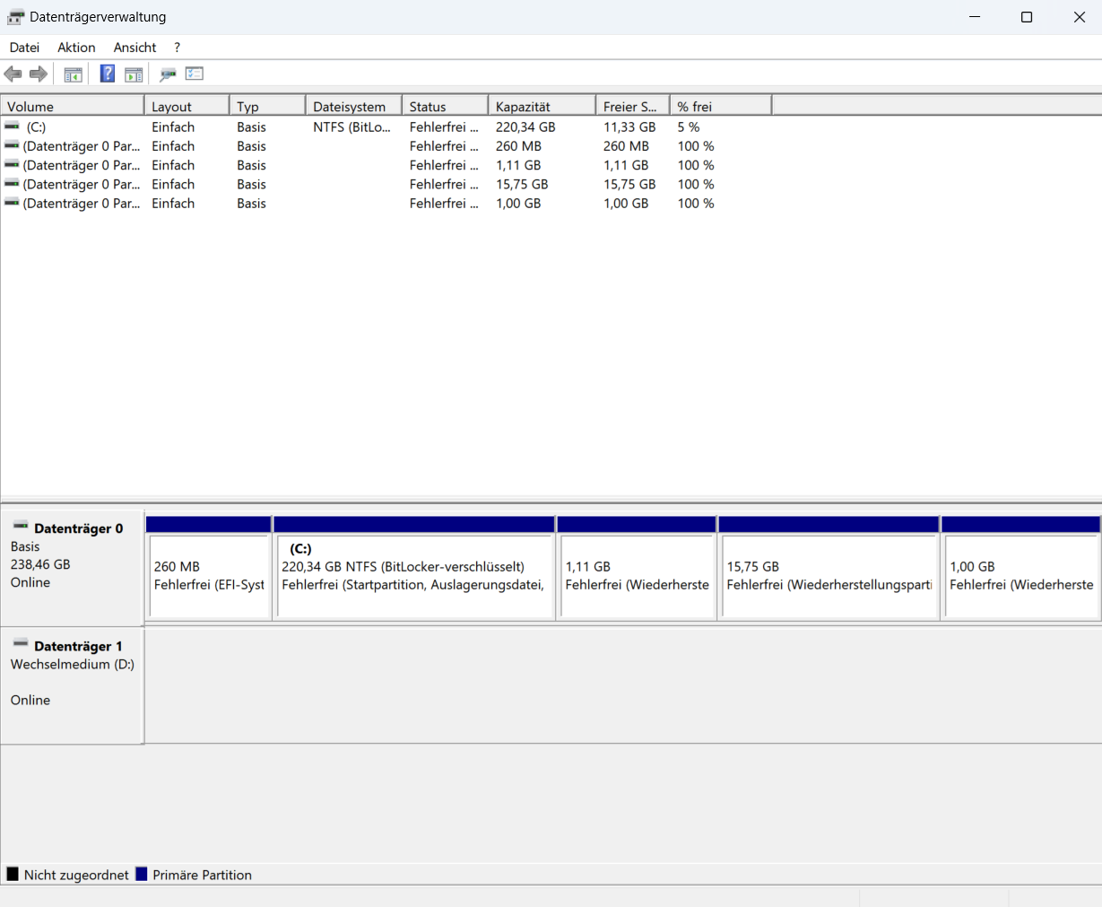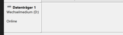 Die SSD wird mir als USB Laufwerk angezeigt, jedoch kann ich sie nicht öffnen. Die Datenträgerverwaltung zeigt mir die SSD auch an, allerdings weder wie viele Partitionen vorhanden sind, noch welches Dateisystem verwendet wird.