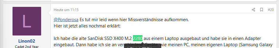 Ich bin auf M.2 2280 gekommen, da er ja in #9 und in #20 selber geschrieben hat.