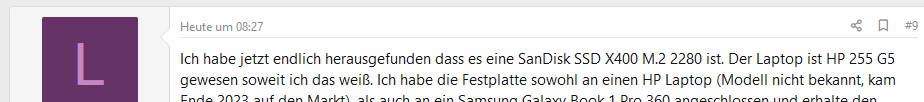 Ich habe jetzt endlich herausgefunden dass es eine SanDisk SSD X400 M.2 2280 ist.