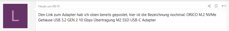 Und eine Sata SSD in einem NVMe Gehäuse anschließen, geht wohl auch nicht. Siehe #15 und Ebay-link in #7 zum Gehäuse.