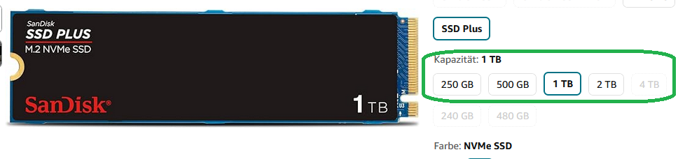 Die gibt es, oder gab es von 250GB bis 4TB. Daher Daher ist es eigentlich gleich, welche SSD man zeigt, oder man müsste nachfragen, welche Größe sie denn hat.
