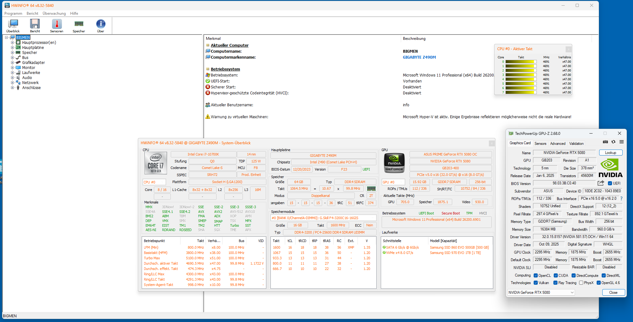 Ich habe mal von beiden GPUs Screenshots gemacht. Die funktionierende 3070 zur abstürzenden 5080.
