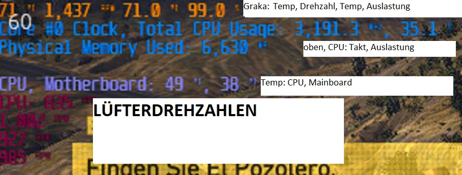 3. Ingame mit Rivatuner (leider zu kleine Schrift, daher sind die Werte schwer zu erkennen)