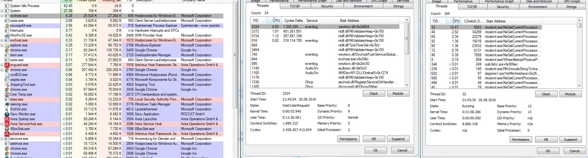 viel habe ich im Internet gesucht und nichts gefunden. Für ein Simulationsprodukt musste ich kürzlich Vieles (wieder-)installieren und bilde mir ein, dass im Betreff genanntes Problem erst seitdem besteht. Was installiert wurde, ist unten zu sehen. Genauso ein Ausschnitt aus dem Task-Manager. Process Explorer ist unten ebenso vorhanden...