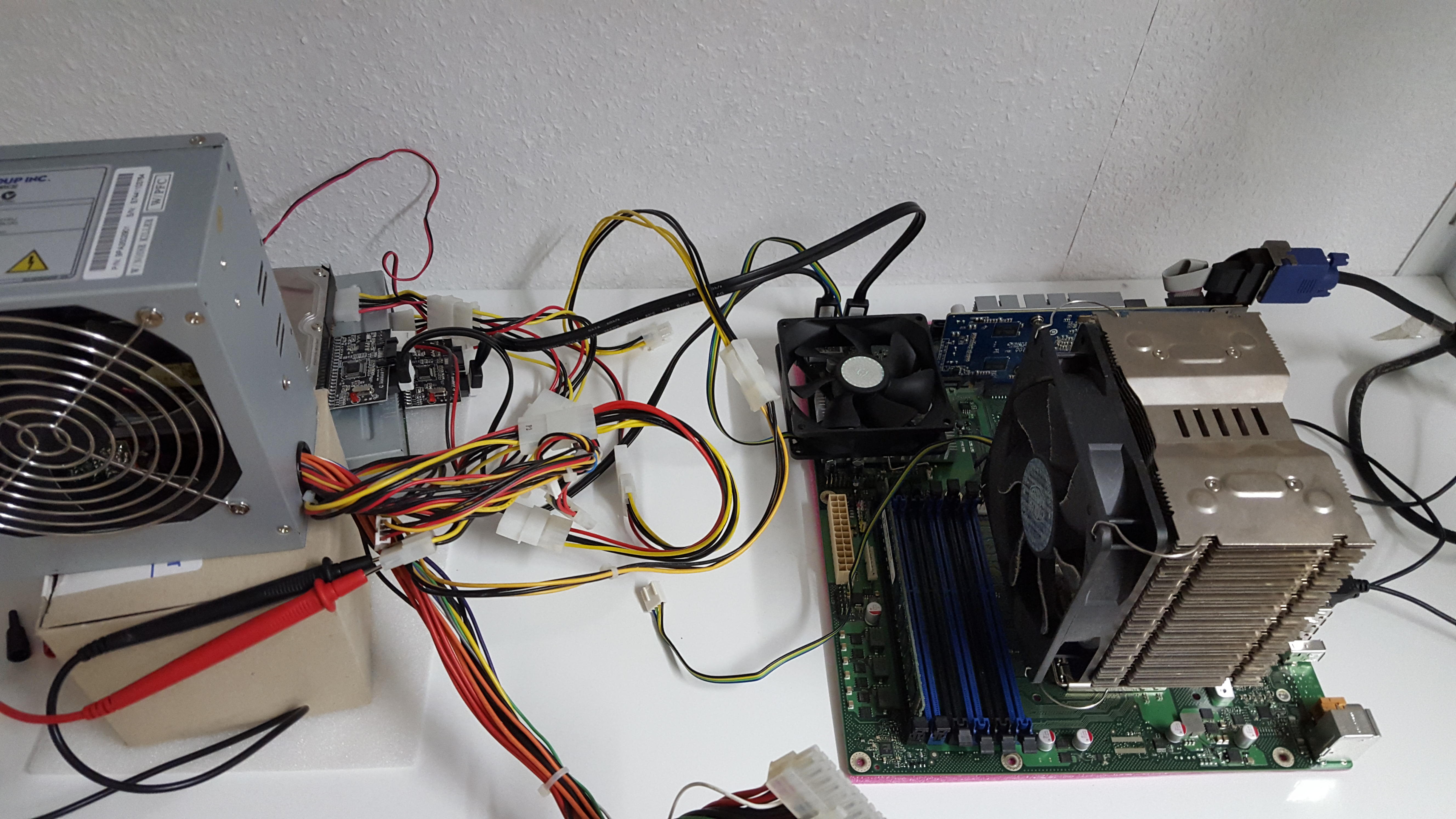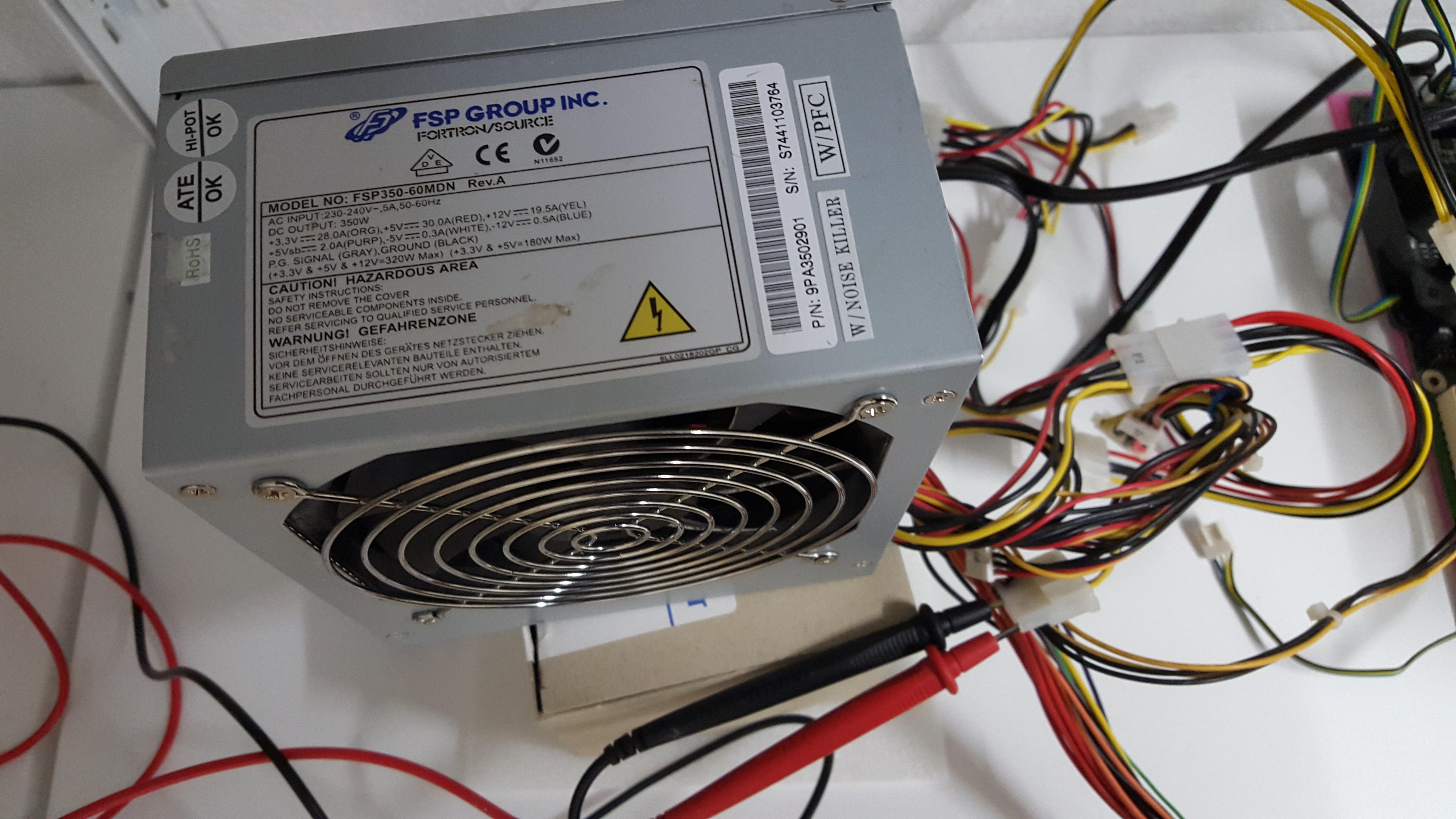 Es bewegt sich kein CPU Luefter, kein Luefter, keine Grafikkarte kein Bauteil, garnichts ist im Betrieb auf dem Mainboard, lediglich die HDD und das CD Laufwerk sowie das Multimeter
