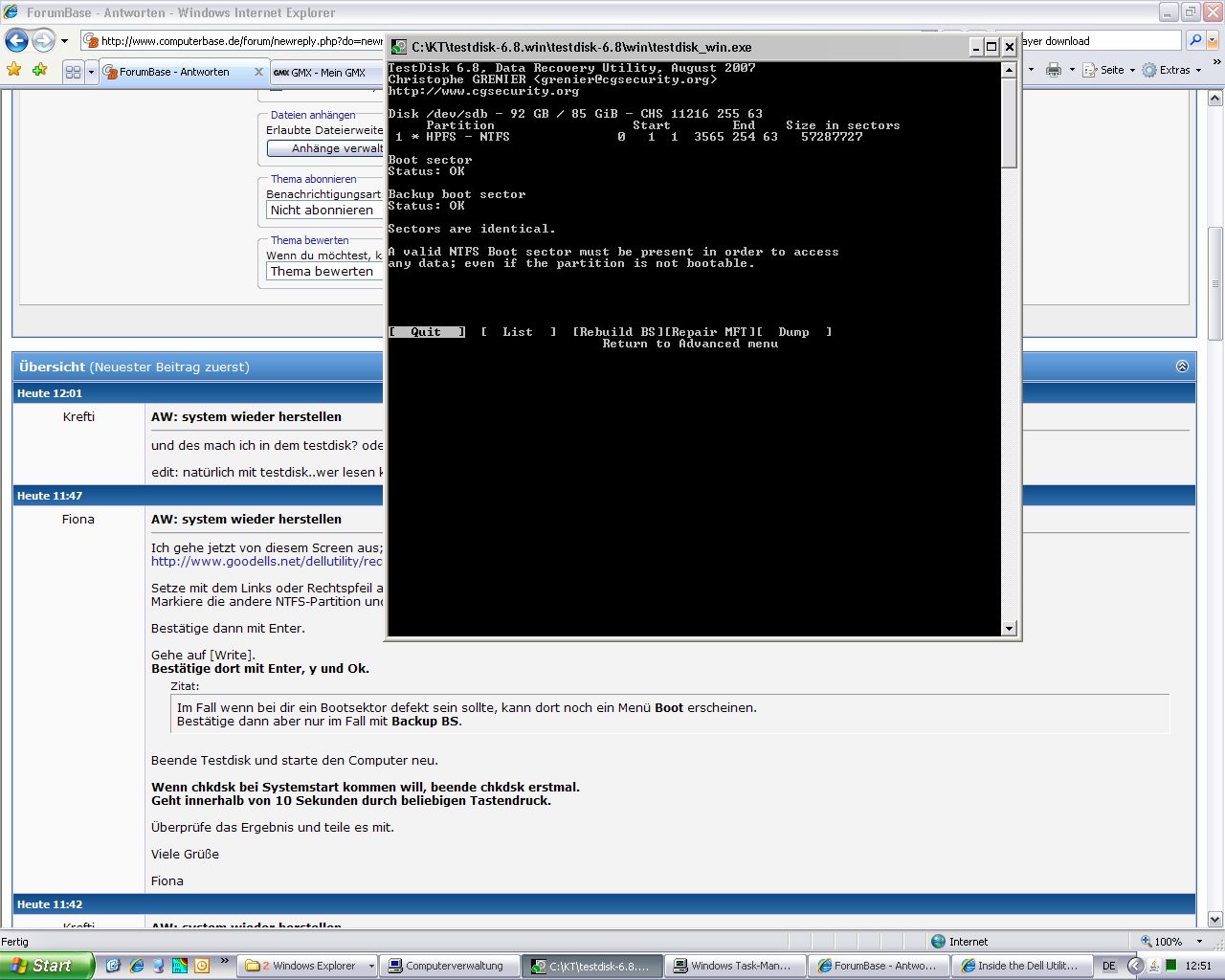 also gut, hab neugestartet und von chdisk kam nix im arbeitsplatz steht jetzt zwar noch eine zusätzliche partition drin, aber kommt beim anklicken fehlermeldung: auf G:\ kann nicht zugegriffen werden. Die Datei oder das Verzeichnis ist beschädigt und nicht lesbar...???