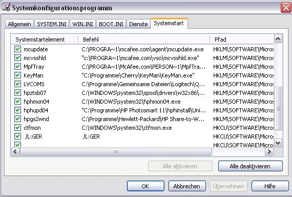 Nimm einfach die Einträge aus dem Run-Schlüssel raus, die auf den system32-Ordner verweisen.Dann sollte das Problem schon erledigt sein. Wichtig sind sie nicht.Unabhängig davon würde ich ohnehin mal bei deinen Autostarts ausmisten. Also mal unter msconfig | Systemstart alles rausnehmen und dann schauen, was man wirklich braucht.