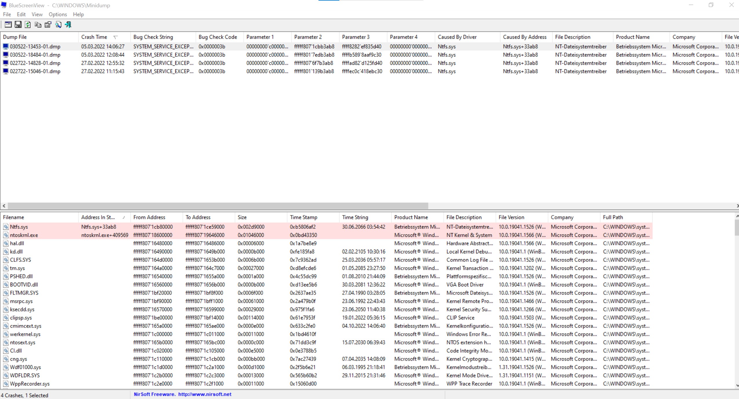 Bekomme einen blauen Bildschirm (wie im Dateianhang) mit Stillstandscode: SYSTEM_SERVICE_EXCEPTION und Fehlerursache: Ntfs.sys.