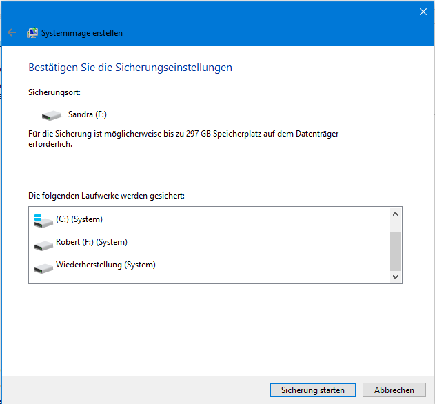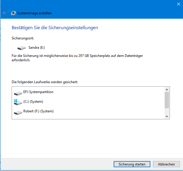 Möchte mal wieder ein Systemabbild machen ( Backup ).
