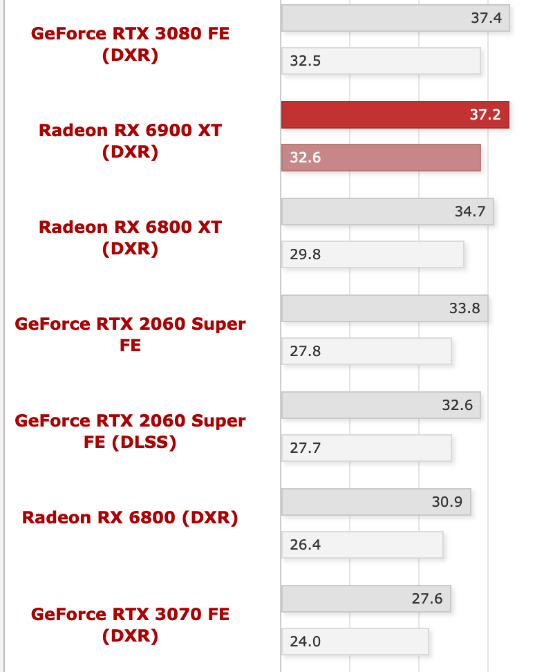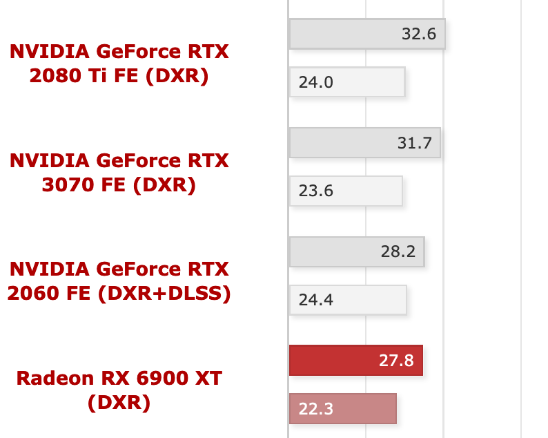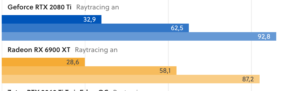 Drittschnellste Kraft ist man auch ohne DLSS nicht durchweg. Die 3070 liegt im Mittel bei CB genau gleichauf mit der 6800XT und dabei kommen die Radeons hier bei CB im Schnitt noch besser weg als bei anderen Reviews. Bei PCGH mit anderer Spieleauswahl ist die 3070 im RT z.B. 10% schneller als die 6800XT.