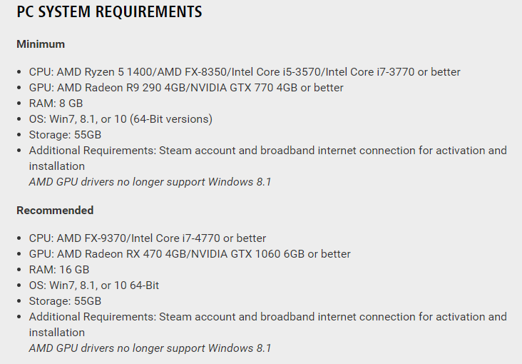 Na da schau her, plötzlich ist ein i5-3570 nicht nur das Minimum, sondern sogar empfohlen. Das macht zwar auch wenig Sinn, aber okay ^^