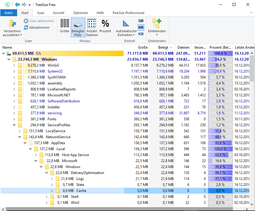 Ich habe 0.0 MB DeliveryOptimization\Cache und ewig keine Datenträgerbereinigung selbst ausgeführt.