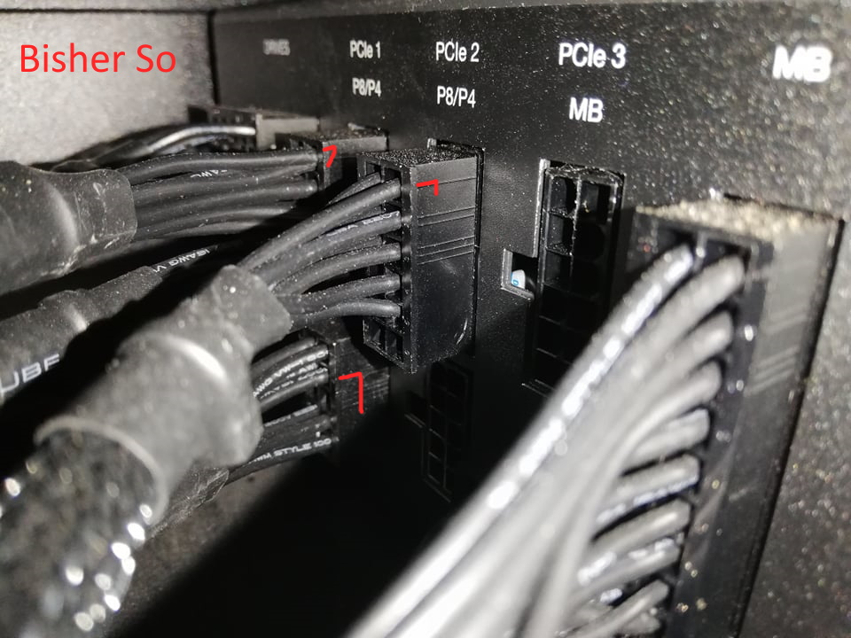 • Verkabelung vom Netzteil prüfen, dass auch wirklich genug Strom für die GPU bereitsteht (mehrere Kabel, passende Aufteilung auf verschiedene Rails vom NT)