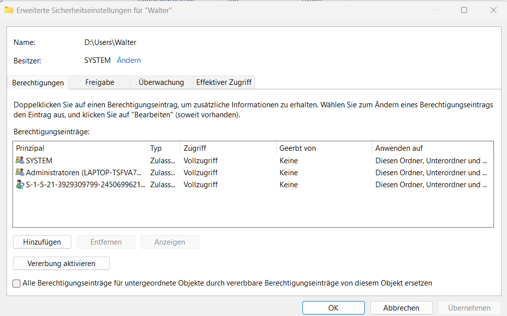 Danke für die Idee, wollte eh schon lange mal Linux testen, so mache ich hier jetzt gleich mal erste Erfahrungen damit... Das mit den Berechtigungen unter Windows probiere ich dann nicht mehr, ginge aber sicher auch.