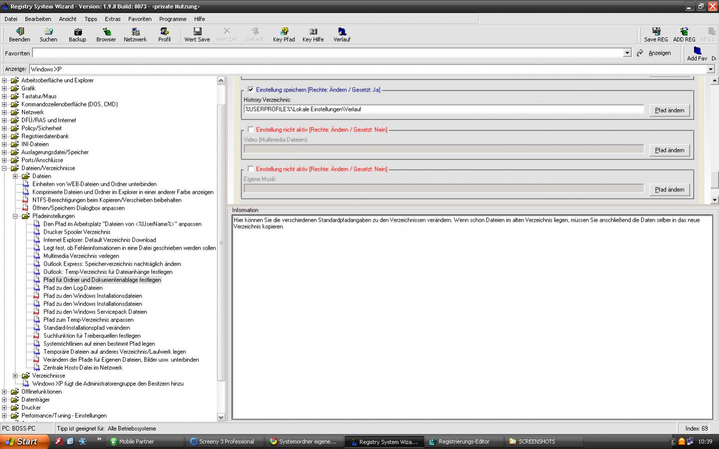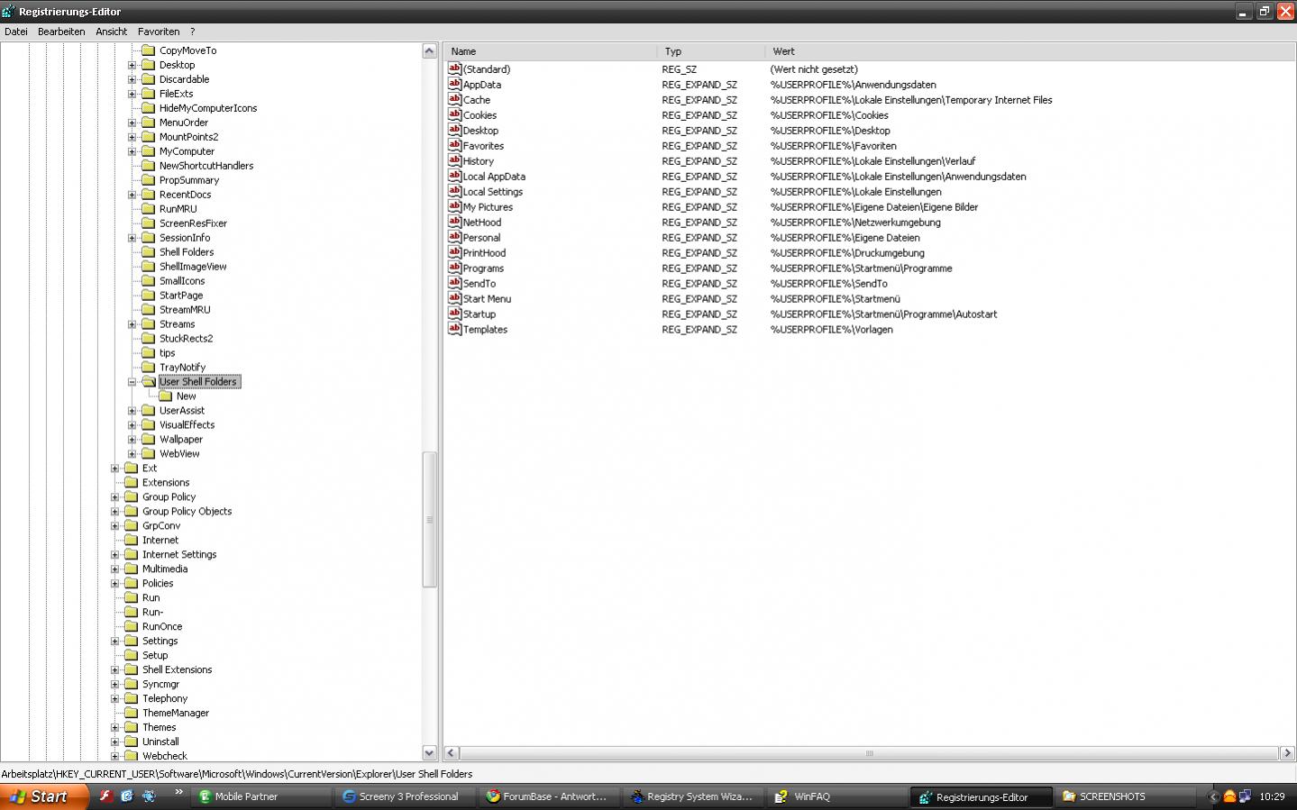 In der registry gibt es drei einträge My pictures My Music (diesen einträgen ist ein Pfad zugeordnert)! Bei dem Eintrag My Videos ist eine Leere zeile zu sehen. also kein Pfad oder Wert angegeben.