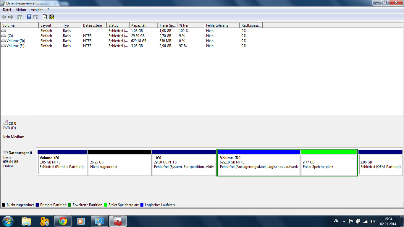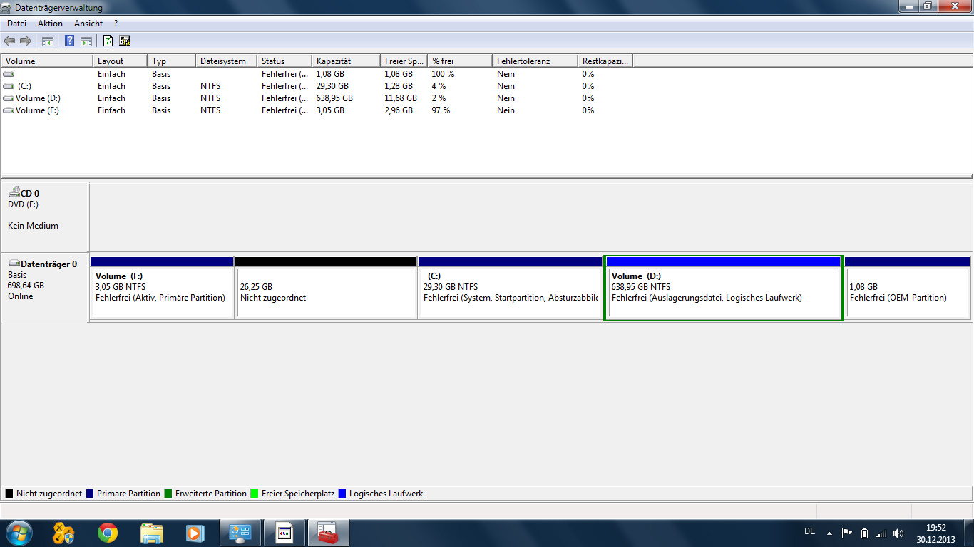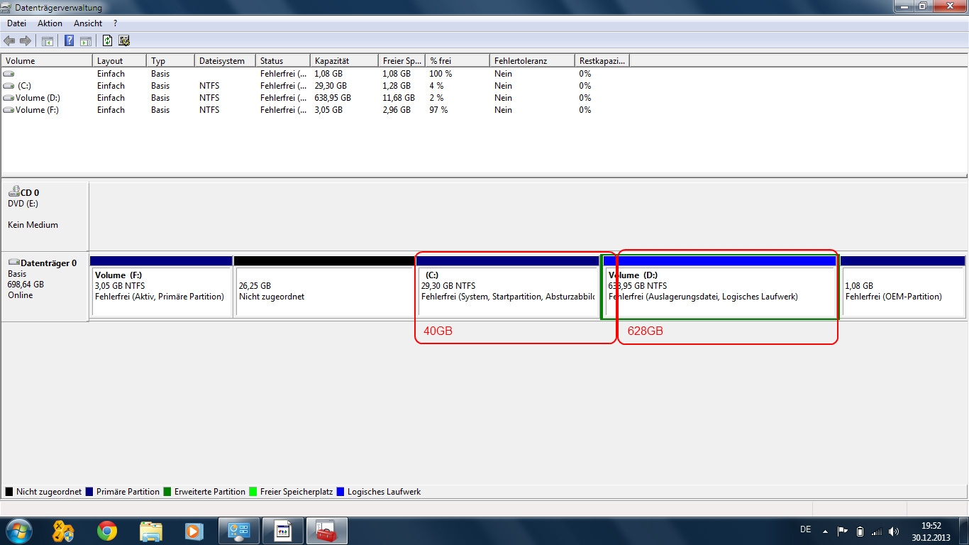 Jedoch müsste D dann nach rechts um diese 11GB verschoben werden was bei 590GB Daten ewig dauern wird und im Fehlerfall sehr gefährlich ist.