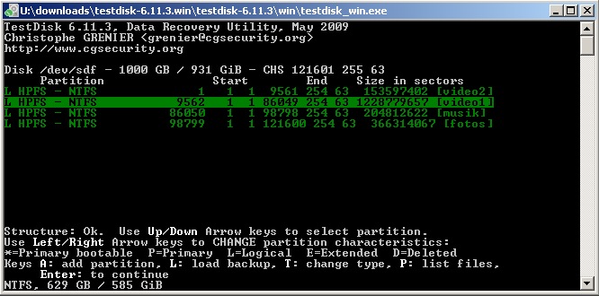 Starte Testdisk bestätige bei dem Log-Datei-Screen mit Enter, wähle deine betroffene Festplatte aus und bestätige mit Enter, bestätige bei Partition Table Typ
