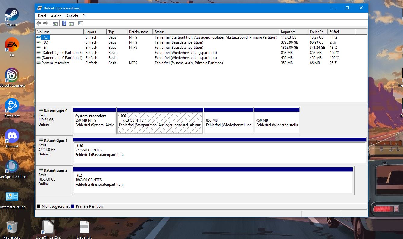 Habe Youtube und das Forum bzw Google zur Hilfe genommen, jedoch traue ich mich nicht and Diskpart per CMD ran da in den Anleitungen steht das man nur maximal 3 Partitionen auf C: haben darf und ich hab 4