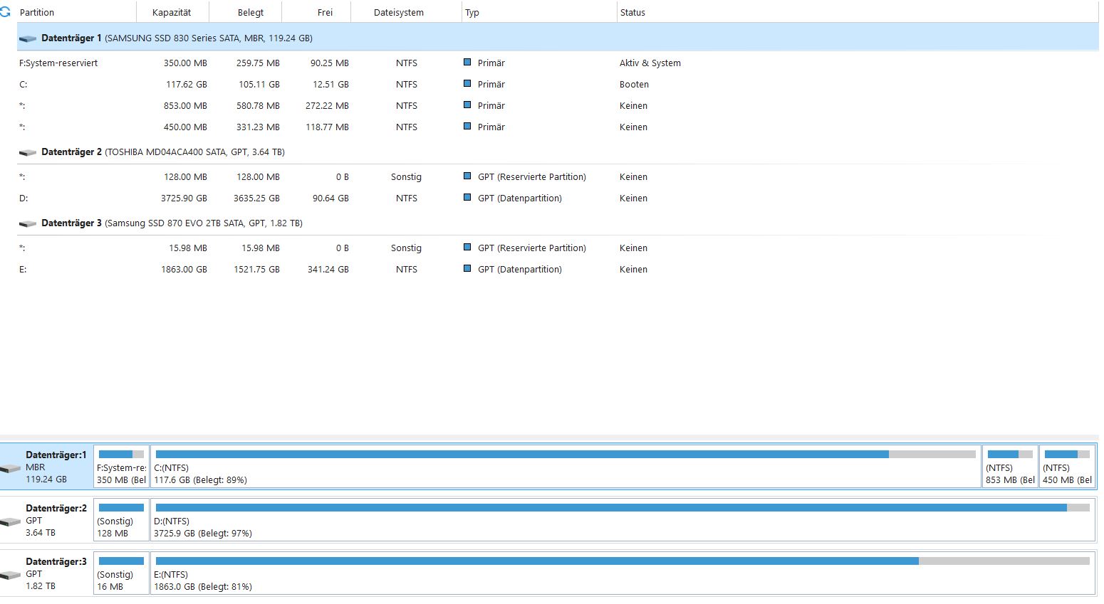 Samsung 830 128GB SSD + Samsung 870 EVO 2TB + Datengrab 2TB