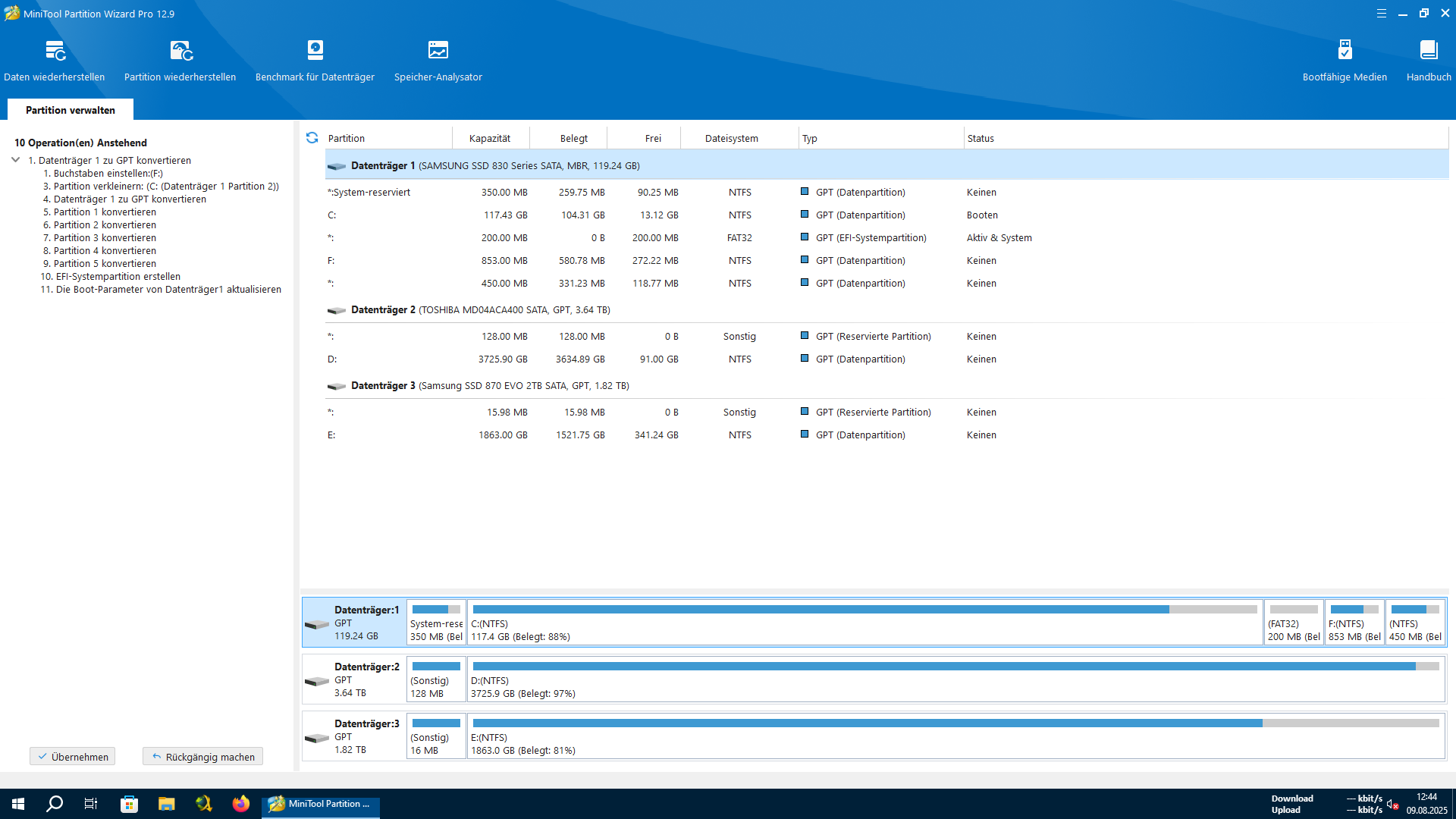 Ich versuche hier seit heute morgen MBR zu GPT zu konvertieren bekomme jedoch ne Fehlermeldung mit dem Programm "MiniTool Partition Wizard Pro" (abgesicherter Modus)