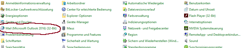 In der Systemsteuerung habe ich nichts vom Mail oder Office.