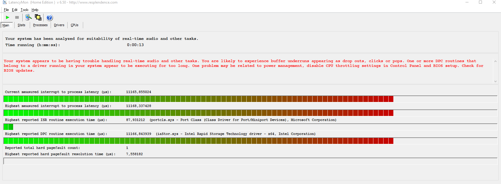 Aber auch eine (mehrfache) Neuinstallation hat nicht geholfen. Habe auf ein IRQ-Problem getippt und die X-Fi auf einen anderen Steckplatz umgesteckt und im UEFI HPET umgestellt, sowie das UEFI auf default zurückgesetzt. Das ganze System fühlt sich auch sehr laggy an und im Taskmanager habe ich den Prozess Systemunterbrechung mit ca. 10% stehen.
