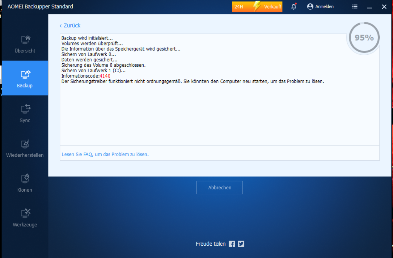 Mit AIOMEI Backupper erhalte ich die Meldung: