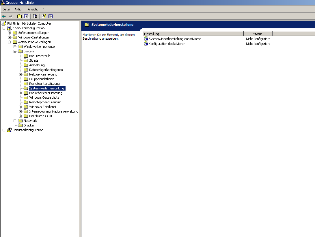 Ich weiss ganz genau dass ich meine Systemwiederherstellung eins mal aufgemacht habe, weil ich dieses Feature von WinXP nicht nutze weil es einfach schlecht gemacht ist und ic eine alternative durch acronis habe.
