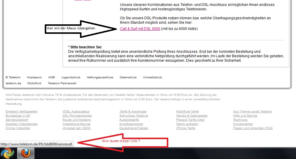 Wenn du bei der Verfügbarkeit auf den Link gehst mit der Maus steht unten in der Statusleiste des Browsers ein Link ( siehe Bild). Wie lautet dieser Link?