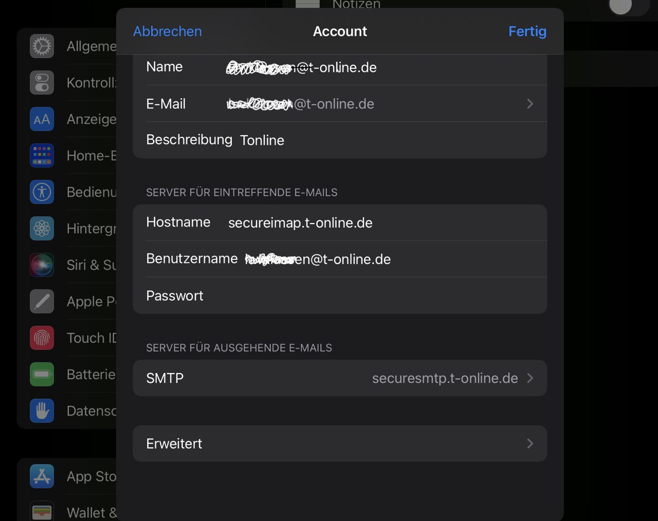 ist es schon mal jemanden gelungen die Mails der Telekom auf dem Ipad abzurufen? In der Apple-MailApp?