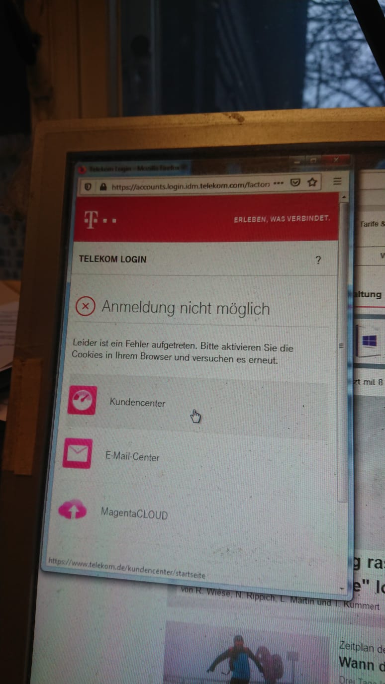 Wenn er auf die T-online Seite geht und dann auf den Email login klickt öffnet sich ja ein Popup wo man sich anmelden muss, dort gibt er seine Mailadresse ein, geht auf weiter und dann kommt die Fehlermeldung aus dem Bild, ein PW eingeben ist gar net erst möglich.