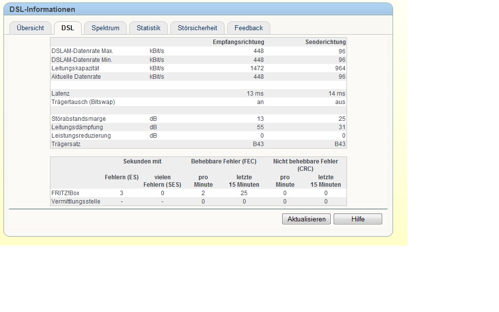 Bringt da ein bessers Modem (die von der Fritzbox sollen ja nicht so gut an schlechten Leitungen sein) oder hat mich die Telekom da fix auf 448/96 kBits geschalten?