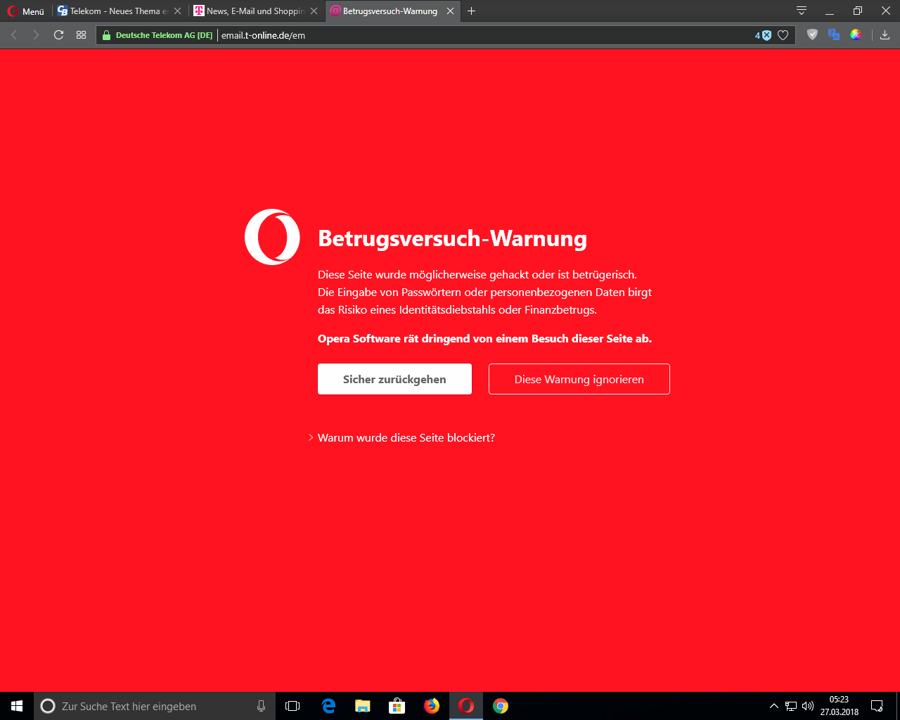 Opera rät mir davon ab, mich auf meinem Email-Konto einzuloggen. Ist etwas bekannt, ob t-online gerade Probleme mit Datenklau hat? Ich traue mich im Moment nicht mich einzuloggen.