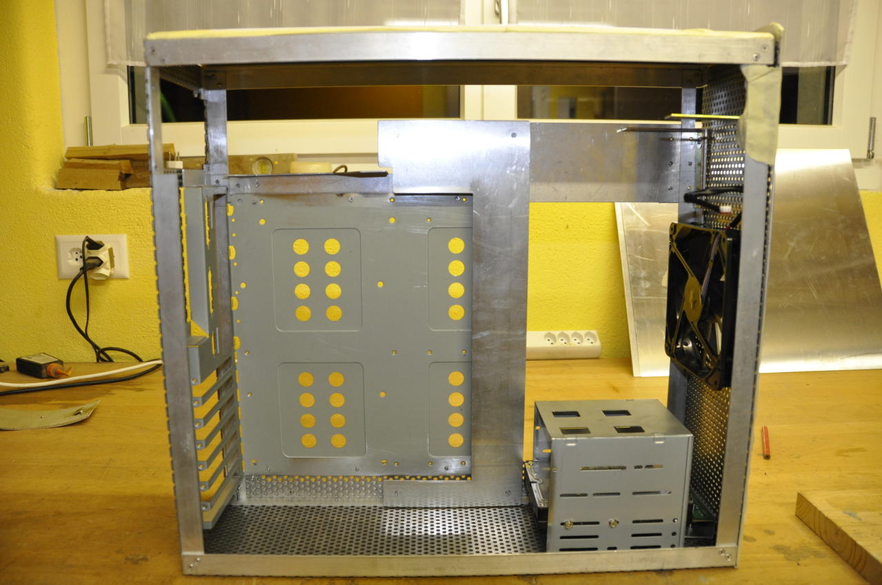 3. Aussparungen für den Mainboardschlitten und Netzteil hinten (zum Glück habe ich hier zuerst geübt).