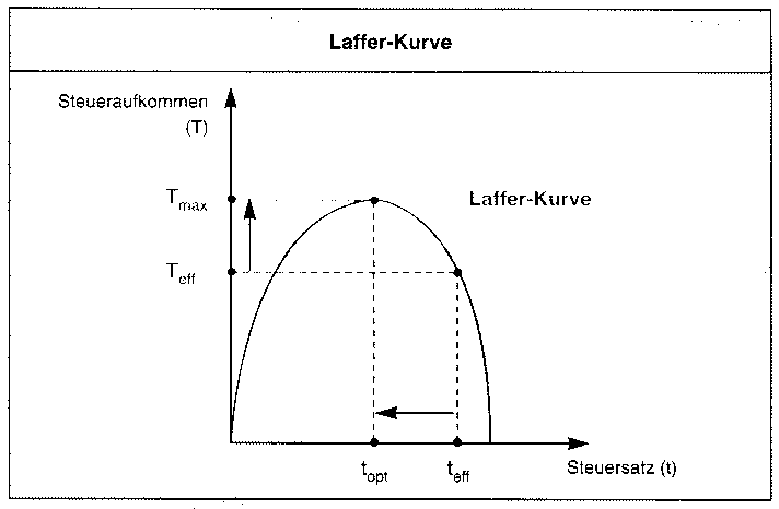 Ich meine das Laffer-Theorem: Die Senkung der Steuersätze führt zu mehr wirtschaftlicher Dynamik und zu einem höheren Steueraufkommen. Und natürlich im Umkehrschluß auch zu der Aussage, daß höhere Steuern die wirtschaftliche Dynamik hemmen, damit das Steueraufkommen reduzieren und so zum klassischen Eigentor werden