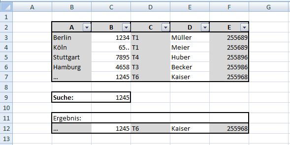 Mein Ziel ist es, dass man nach "Suche" eine Zahl eintippen kann nach welcher wiederum die Tabelle durchsucht wird