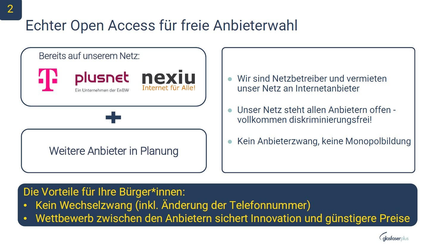 - Bei ADSL als Ergebnis ist immer DTAG der Carrier. 1&1 selbst jedoch ist als Provider auf mehreren anderen Zugangsnetzen mit L2-Anbindung verfügbar, easybell nur auf Wenigen. Es kann also, anders als in den Daten ersichtlich, 1&1 Internet mit Versatel L2-BSA im Netzbereich verfügbar sein, hier also Versorgung per Breitbandatlas prüfen!