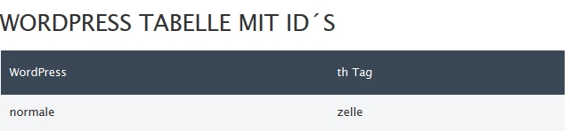 <caption id="table1 caption"> Wordpress Tabelle mit ID´s</caption>