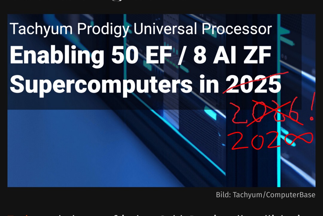 hab das mit 2026 mal eben korrigiert,Volker schrieb:Tachyum bekommt frisches Geld. Damit soll endlich ein echtes Produkt ins Tape-out überführt werden, bei dem zuvor aber noch einmal die Spezifikationen angepasst werden müssen. Von einem Börsengang wird auch gleich mit geträumt, 2027 könnte sich das Unternehmen vorstellen.