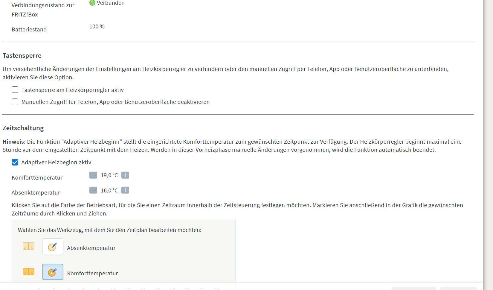 Gerade hier wäre es doch praktisch und einfach umzusetzen, denn der klassische Heizungsregler geht halt schwer aber selbst da gab es mechanische Sperren (und kostet letztlich nur ein Bruchteil). Schade, dass viele solche kleinen Dinge von den Herstellern nicht zu Ende gedacht werden bzw. seitens der Community frei adaptierbar sind. Mittels HA habe ich mir zumindest eine Nachregulierung als automatische Korrektur, wenn wieder heimlich gespielt wird, eingerichtet.