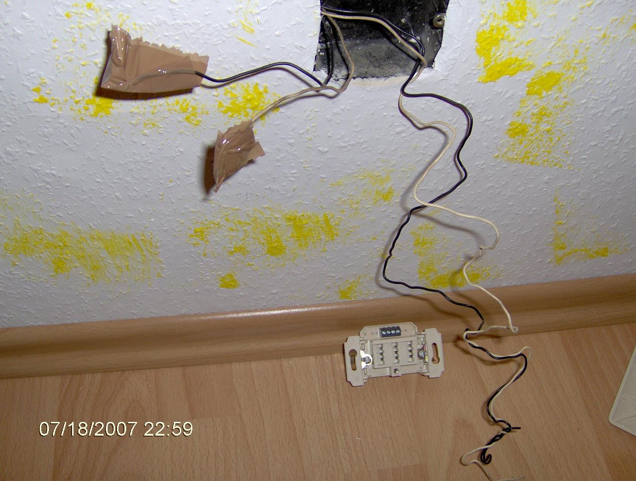 Aus der Wand kommen 2 Kabelstränge (1 davon abgeklebt)